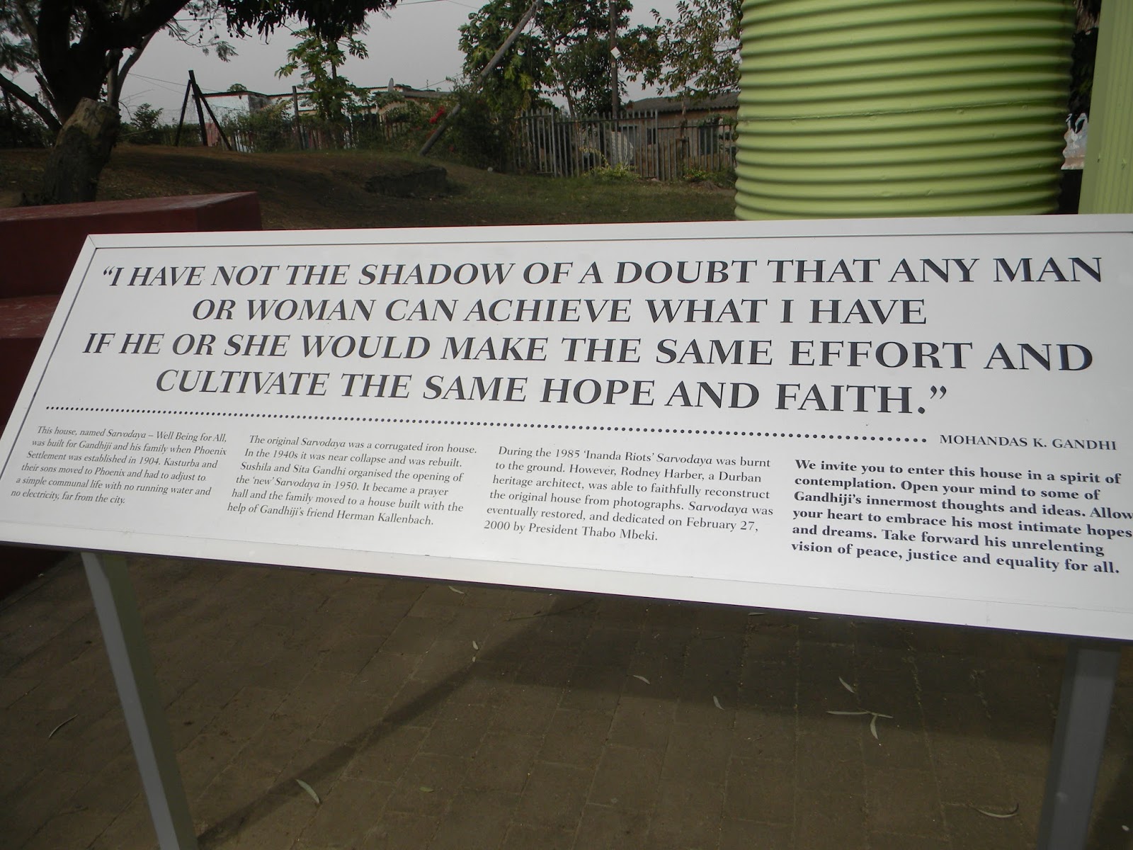 Gandhi spent 21 years in South Africa, where his experiences shaped him into the legacy we know today. He initially went to South Africa as a new lawyer, on an assignment, but was so appalled by the racism and injustice he saw there, that he decided to stay, building his home and practices of nonviolence. After being thrown out of a train en route to Johannesburg simply for being a man of color, he started building his philosophy of Satyagraha, or nonviolent resistance. In Durban, we visited Sarvodaya, his original home, which was destroyed during apartheid, then rebuilt.